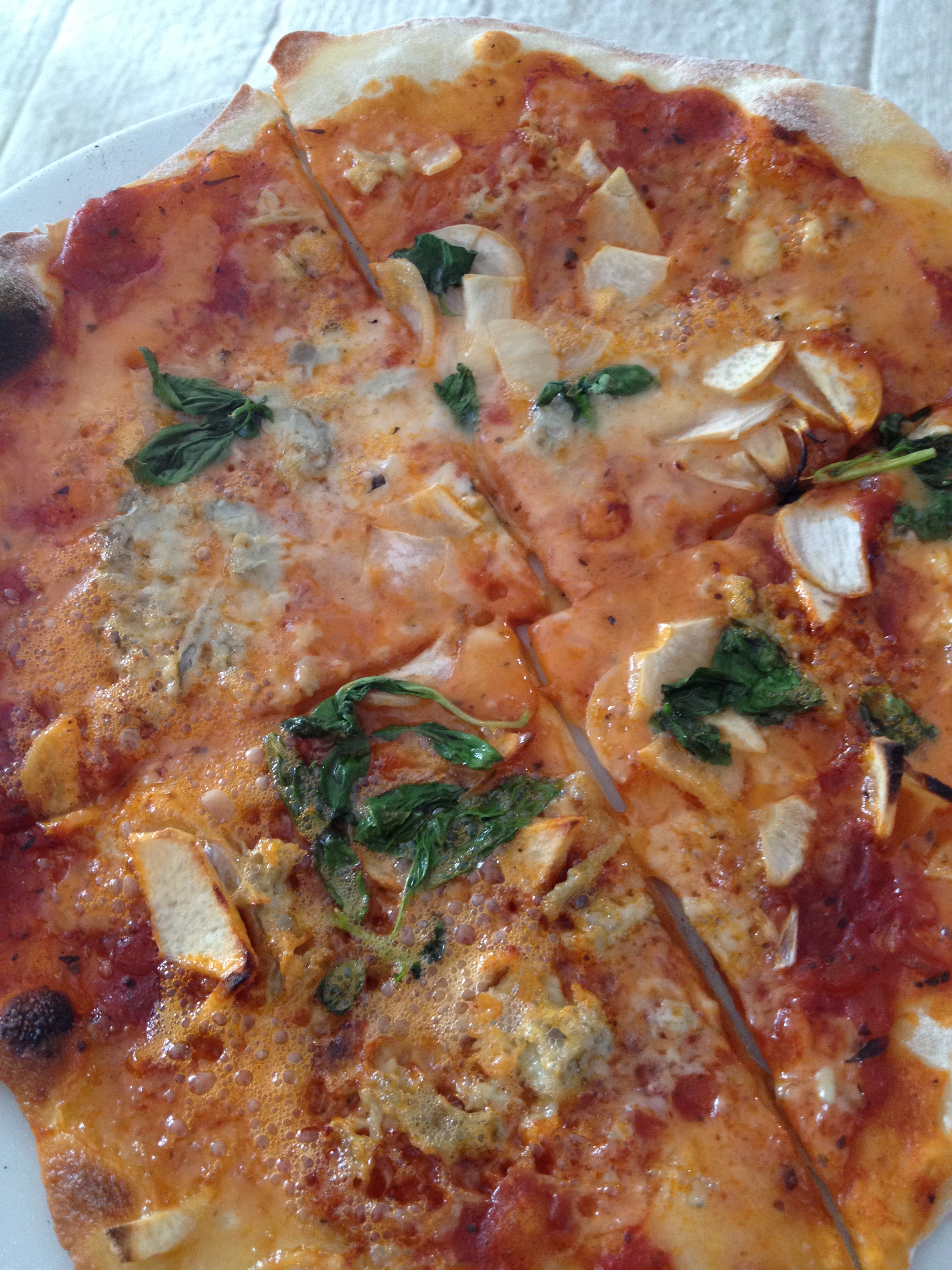 (Pizza mit Gorgonzola und Knoblauch)