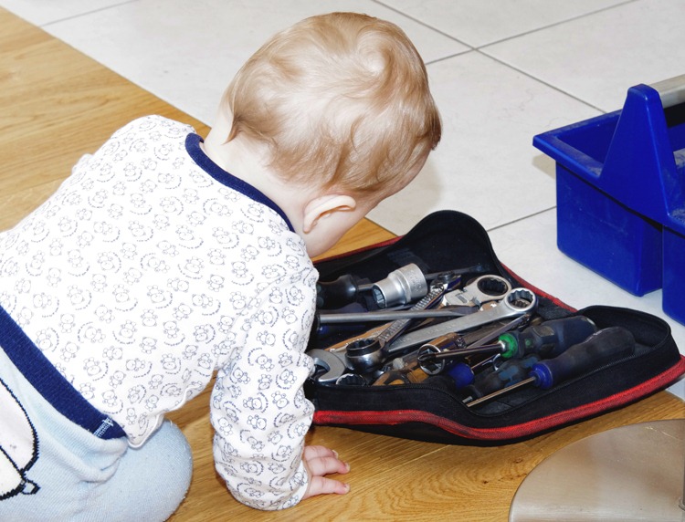 Nicht nur das Interesse und die Fertigkeiten im Haushalt wollen geübt sein, auch der Umgang mit Werkzeugen verschiedenster Art fördern wir frühzeitig. Die Arbeit der Handwerker fesselten Felix’ Aufmerksamkeit sehr und er war ganz begeistert vom Meister einen halben Meter zu bekommen. (Anmerk.: “ein Meter” bezeichnet im schwäbischen/umgangssprachlich einen Zollstock meist mit einer Länge von 2 Metern, dieser hier war ein üblicher halber, sprich nur einen Meter lang )